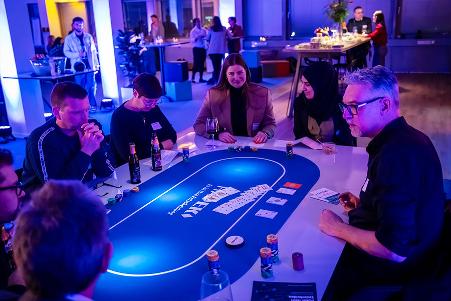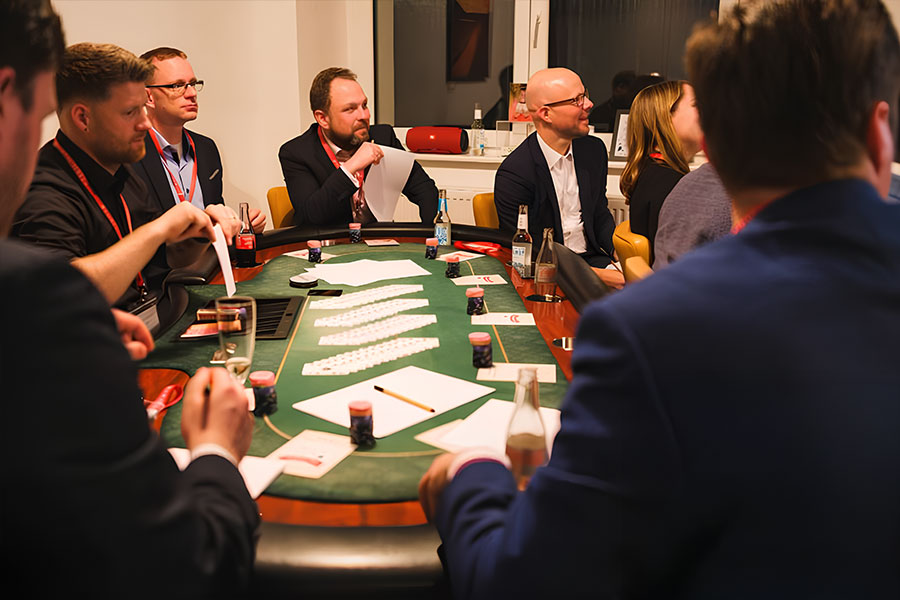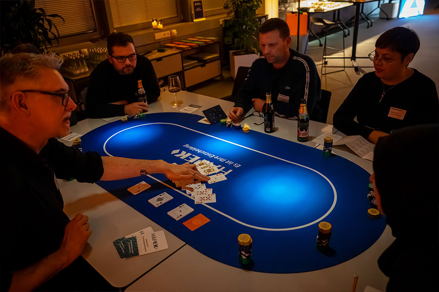 Wir führen Sie in die Welt des Pokerspiels ein (keine Vorkenntnisse notwendig) und zeigen Ihnen die tieferen Zusammenhänge des Spiels mit unserem Alltag. Von seiner Fähigkeit, die Logik zu schärfen, bis hin zur Kunst des Gewinnens und Verlierens. In der ersten Runde erleben Sie sofort, wie diese Erkenntnisse in Aktion umgesetzt werden können.