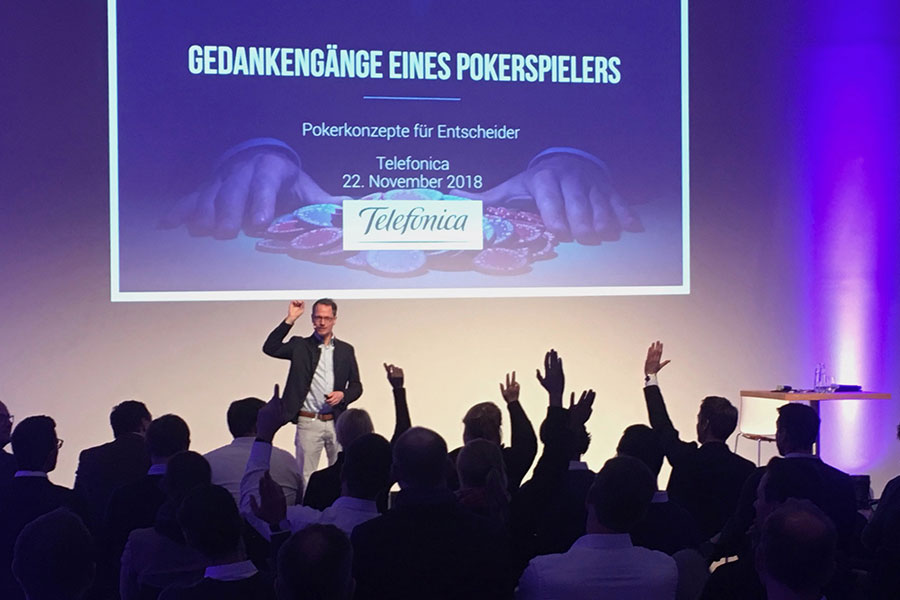 In seiner Vortragsreihe „Pokerkonzepte für Entscheider“ gibt es überraschende Antworten von Deutschlands bekanntestem Poker-Experte, Jan Heitmann. Er berichtet mit Leidenschaft und Know-how, wie die vielfach erprobten Erkenntnisse aus dem Pokerspiel auf optimales Entscheiden übertragen werden können.