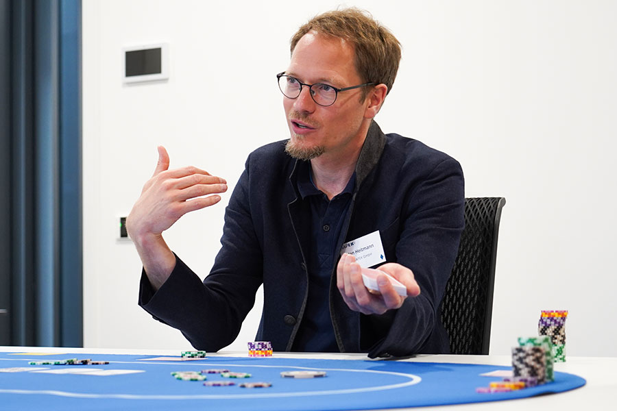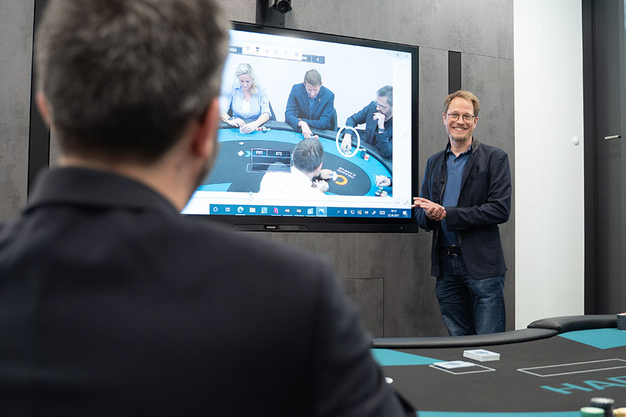 In unseren Workshops geht es ans Eingemachte. Sie denken, Sie treffen gute Entscheidungen? Wir gehen mit Ihnen und ihrem Team in die Tiefe. Was sind die Grundstrukturen einer Entscheidung? Welche Faktoren beeinflussen Entscheidungen? Zusammen übertragen wir erprobte Poker-Konzepte auf ihr Business und trainieren mit ihnen am Pokertisch.