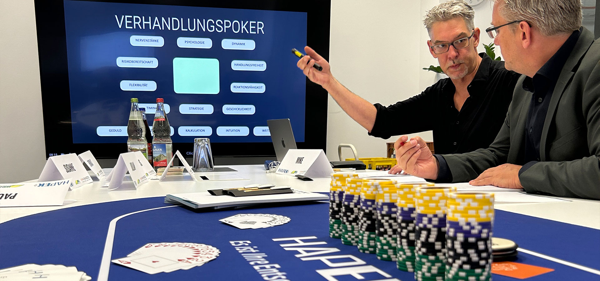 Zum Einstieg werden die Verhandlungsthemen anhand der Poker-Analogie aufbereitet und trainiert.