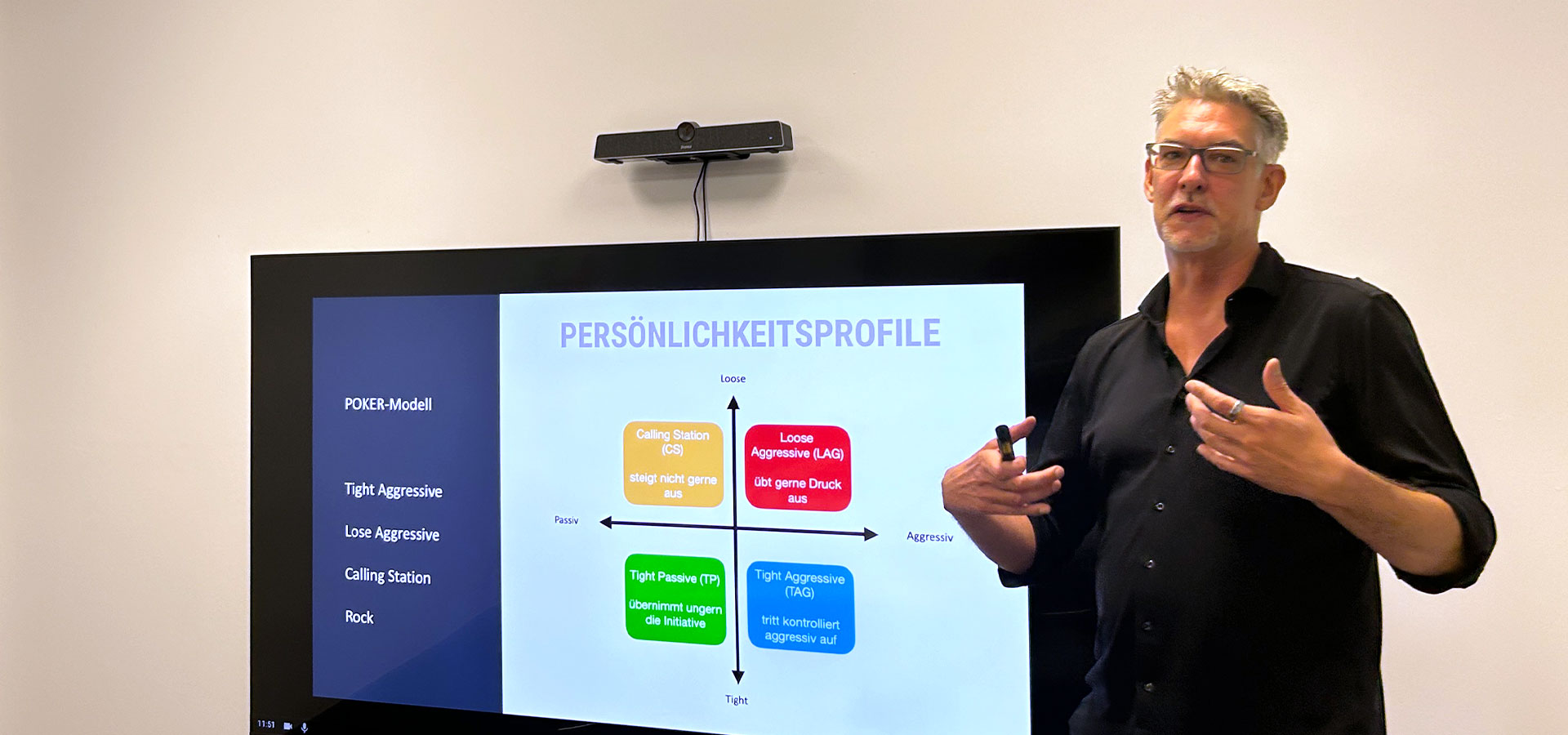 Verhandlungspoker ist ein Modul, das je nach Trainingsintensität über 1 oder 2 Tage die Verhandlungs-Skills schult und einen ganzen Koffer an wertvollen Tools für Gespräche unter kooperativen und kompetitiven Voraussetzungen mit auf den Weg gibt.